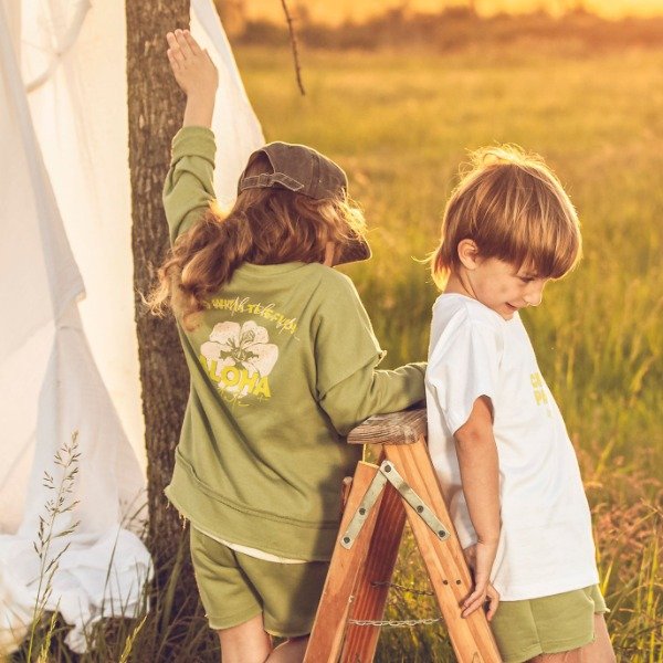 Buzo de algodón rústico liviano, con textura suave y un calce cómodo que acompaña todos los movimientos.
