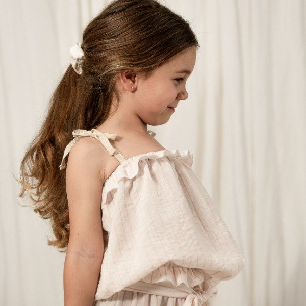 Su efecto abuchonado y su calce ligero crean una silueta dulce y moderna, perfecta para lucir a tu peque con un estilo elegante y cómodo.